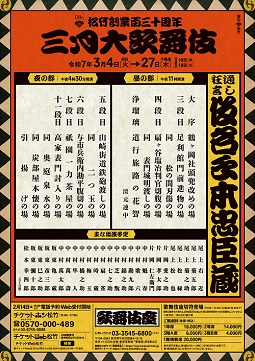 本日(2日)は歌舞伎座・初春興行の初日で、2ヶ月後(3月)の演目(「忠臣蔵」通し)が発表になりましたが、配役がまだ決まっていないようで、五十音順での顔触れ発表のみでした。まあこれだけ多くの役者をバランス良く配置するのも大変なことではありますね。