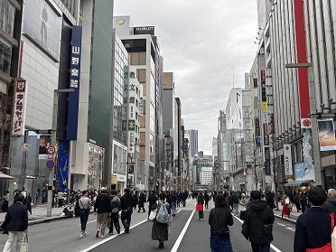 *銀座の歩行者天国。歳末のせいか人出多し。