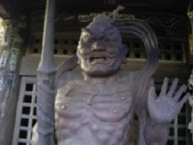 飛騨・高山を旅して「なるほど。そうか。ヒダの顔というものが、たしか、どこかで見かけた顔だと思っていたが、仁王様の顔も、ヒダの顔じゃないか」、「至るところに仏像がいらア」と安吾は感嘆します。(「飛騨の顔」)安吾はヒダらしい特徴の顔は、男の顔ならば仁王様や赤鬼青鬼の像、女の顔ならば奈良の古い仏像などに見えると云います。写真左は、飛騨・大雄寺の仁王像。写真右は、飛騨国分寺の薬師如来の像。これが安吾の云うヒダの顔です。