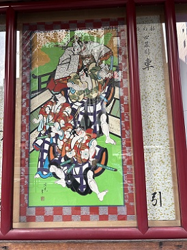 と語るところが大事だと云うことです。丞相失脚の口実を作ってしまった桜丸は、今日死のうか明日死のうかと思わぬ日はありませんでした。しかし、親父さま(白太夫)の七十の賀を祝うまではと考えて・ここまで命を長らえて来たのです。そこに吉田神社社頭で出くわした敵(かたき)藤原時平の牛車。梅王・桜丸は一矢報いんとするが、時平の神通力の前にそれも及ばず、ここで桜丸は完全に「燃え尽きた」のです。ああ桜丸の運命もこれまでであろうか。こうしてドラマは次の桜丸切腹(賀の祝)に流れ込んで行きます。